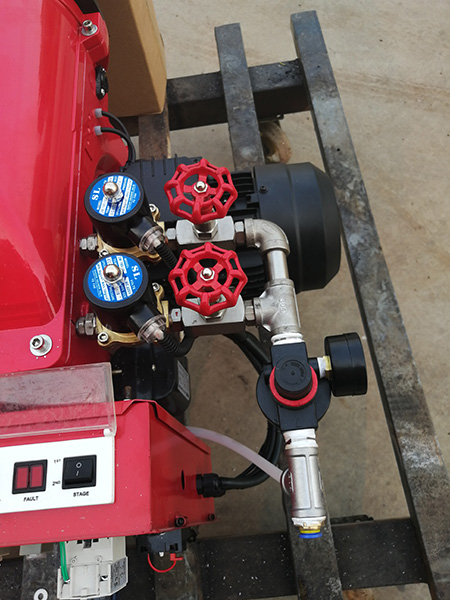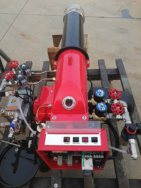 鍋爐排煙的10%-25%經(jīng)FGR煙管從鍋爐排煙主管弓回至鍋爐前端,通過(guò)FGR煙管上的調(diào)節(jié)風(fēng)門(mén)進(jìn)行煙氣量的調(diào)節(jié);助燃空氣經(jīng)過(guò)新風(fēng)過(guò)濾器后進(jìn)入變頻風(fēng)機(jī),經(jīng)風(fēng)機(jī)升壓后至鍋爐前端;燃料氣經(jīng)過(guò)雙截止閥閥組、伺服調(diào)閥后至鍋爐前端;鍋爐排煙、助燃空氣通過(guò)混合器后混合,與燃料氣在設(shè)計(jì)的噴嘴噴出,在鍋爐中形成穩(wěn)定的火焰。
